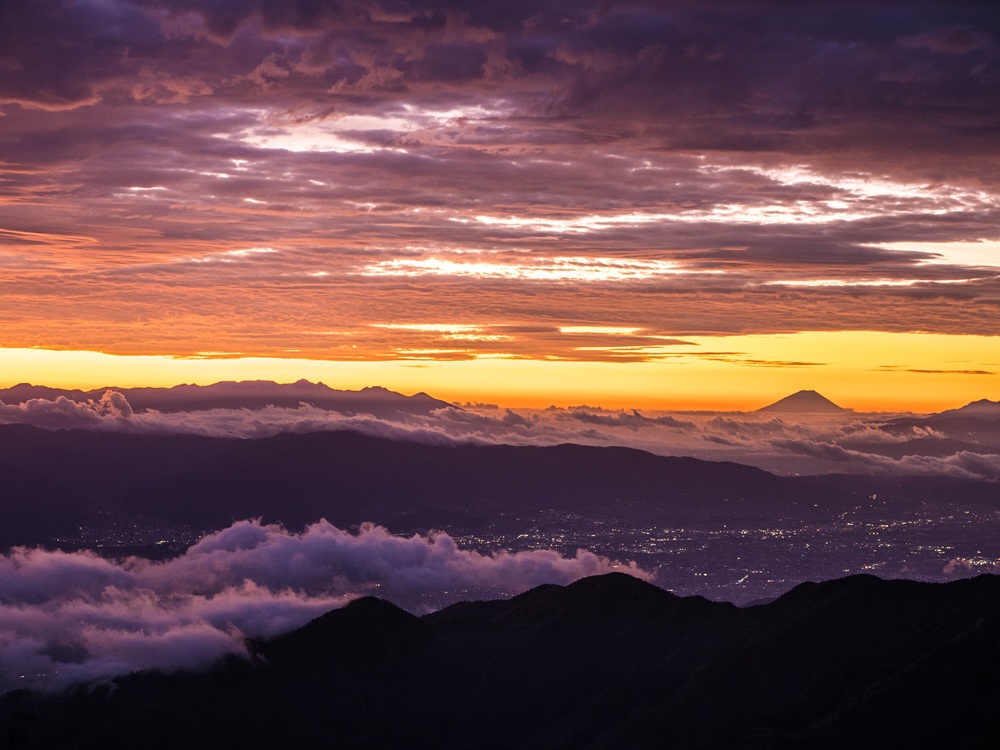 『夕焼けの空に輝く紫金山・アトラス彗星』
