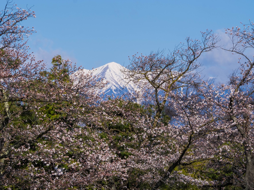 『爺ヶ岳と満開の桜』