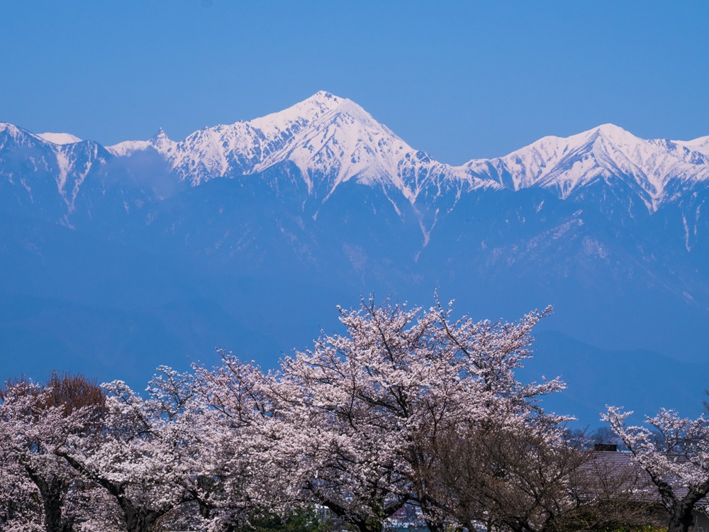 『桜と白馬三山』