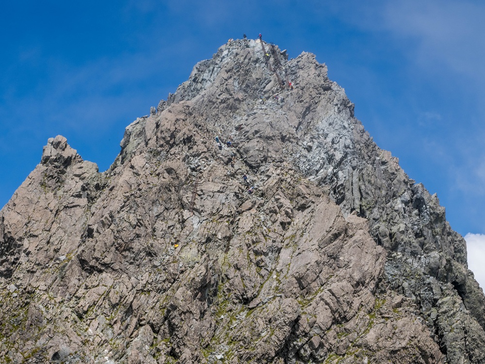 『槍の穂先と登山者』
